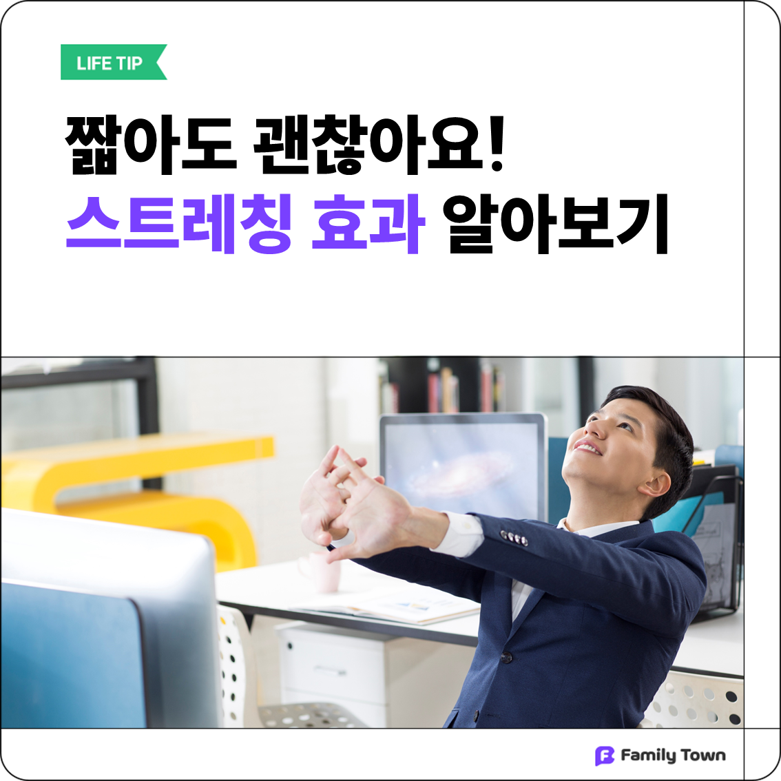 직장인의 경우 사무실 의자에 오래 앉아 있으면서 어깨 결림, 두통, 요통, 허리 디스크 등 다양한 질병과 통증을 겪을 수 있는데요. 꼭 동적인 스트레칭이 아니더라도 정적인 스트레칭을 해주면 신체를 골고루 자극시켜 이완시키고 혈액 순환과 관절 건강에 도움이 됩니다. 사무실에서 만성 피로와 통증을 겪는 직장인이라면 꼭 따라서 해보세요!